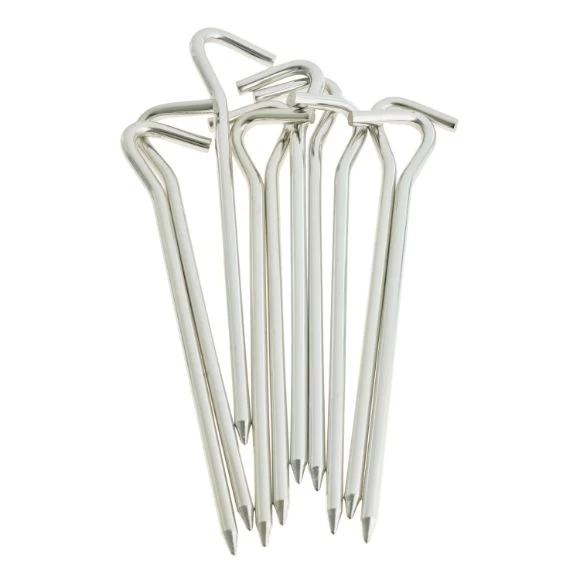 Small, light and really easy to use. They will penetrate most ground conditions making them very versatile. Each pack contains 10 pegs.