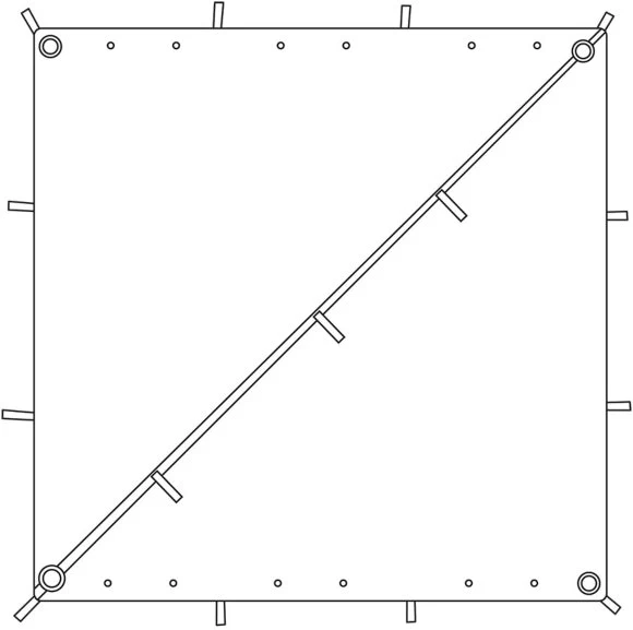 Tarp, Four 4M Elasticated Guy Ropes, Adjusters and Eight Alloy Stakes.