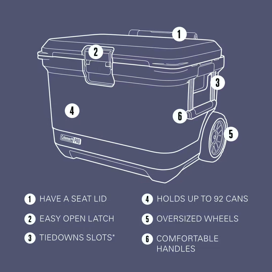 The Coleman® Pro Cooler is designed with thoughtful features, such as the practical one-handed metal system to open and close the cooler. Able to deliver serious cold retention performances, thanks to the fully insulated lid and case. The Coleman® Pro Cooler will provide you with supreme durability and a promise to last.