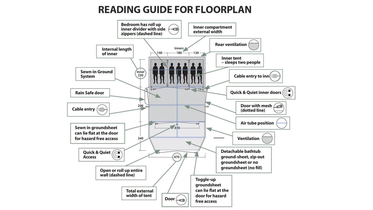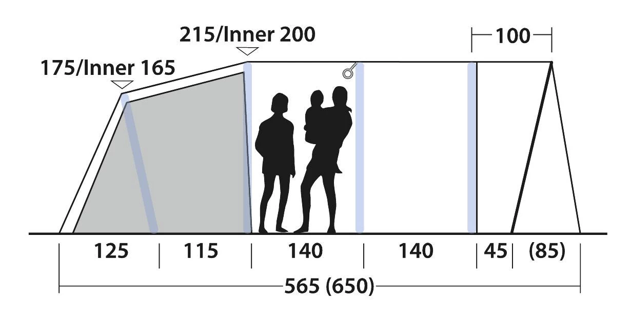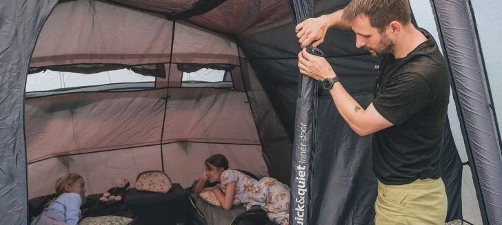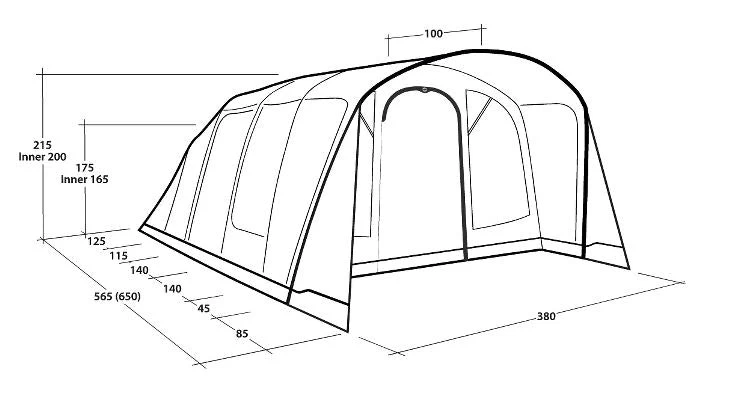 The roomy Outwell Colorado 6 Air is a large family air tent, perfect for those who value spacious living and sleeping areas for a great family vacation. It features side and front doors with mesh backing for easy access and a bug-free environment. Sleeping up to six people across three darkened bedrooms, it offers comfortable accommodation for family adventures.