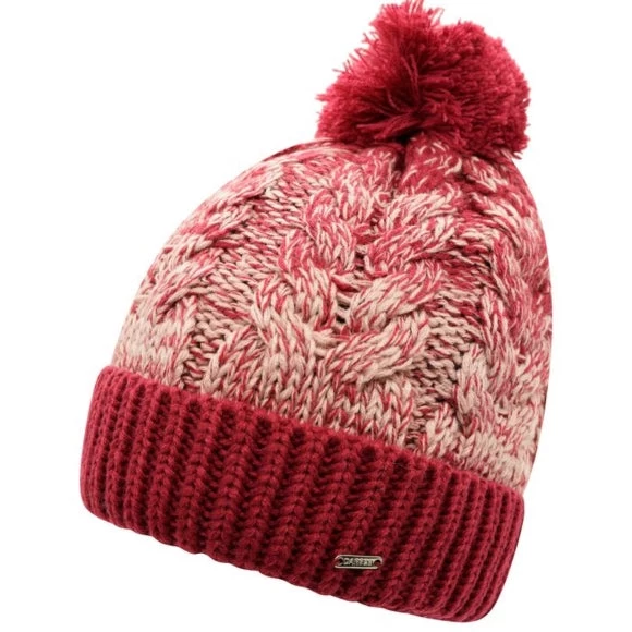 Cable-knit beanie. fleece-lined for extra warmth. Topped with a matching pom-pom.