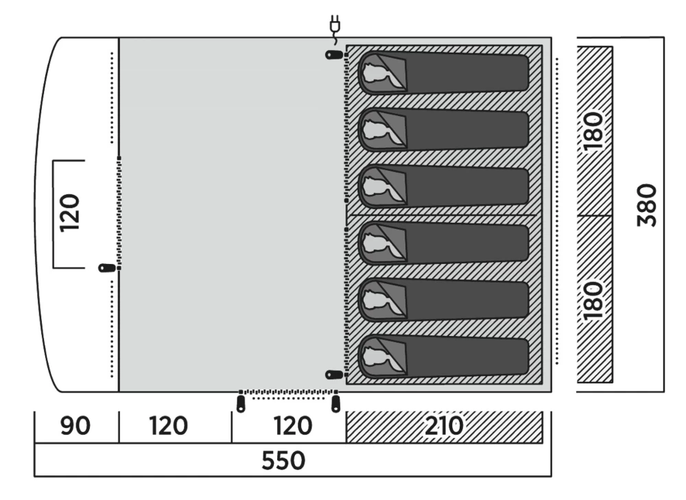 The Skarvan 6 is a spacious and practical family tent, perfect for memorable camping adventures. It features a generous living area, a rain-safe front entrance, and divided bedrooms for privacy, which can be removed if preferred. The SleepTight inner tent, designed with darker materials and optimal ventilation, ensures a restful night’s sleep. A sewn-in groundsheet keeps draughts and insects out, while organiser pockets and mains access add convenience. With a versatile side entrance, full mesh door, and windows with roll-up curtains and mesh panels, the Skarvan 6 offers excellent ventilation and comfort for any trip.