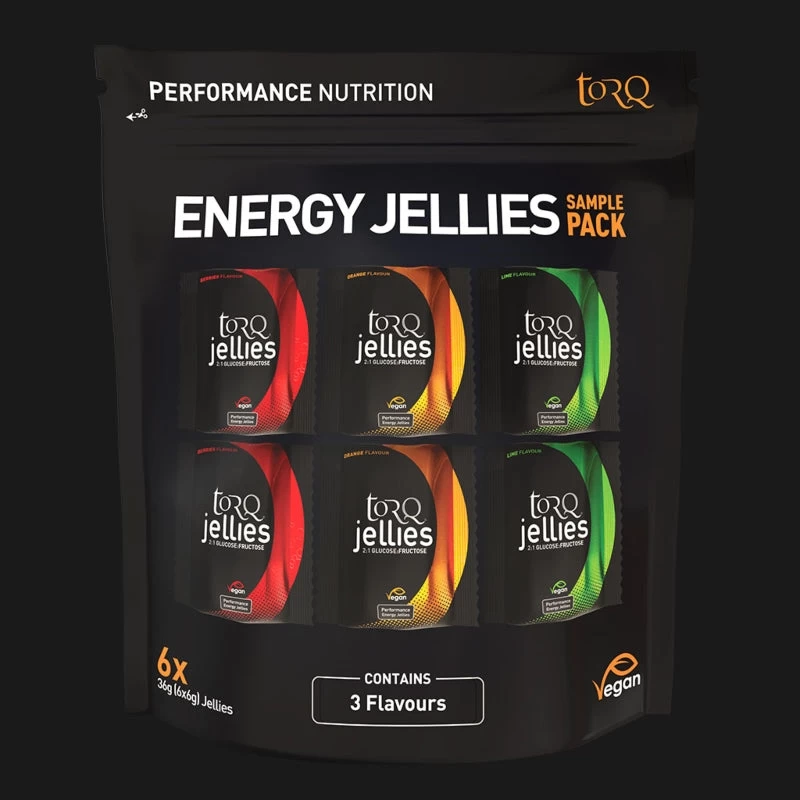 This special sample pack provides you with 2 packets of each flavour of TORQ Energy Jellies.