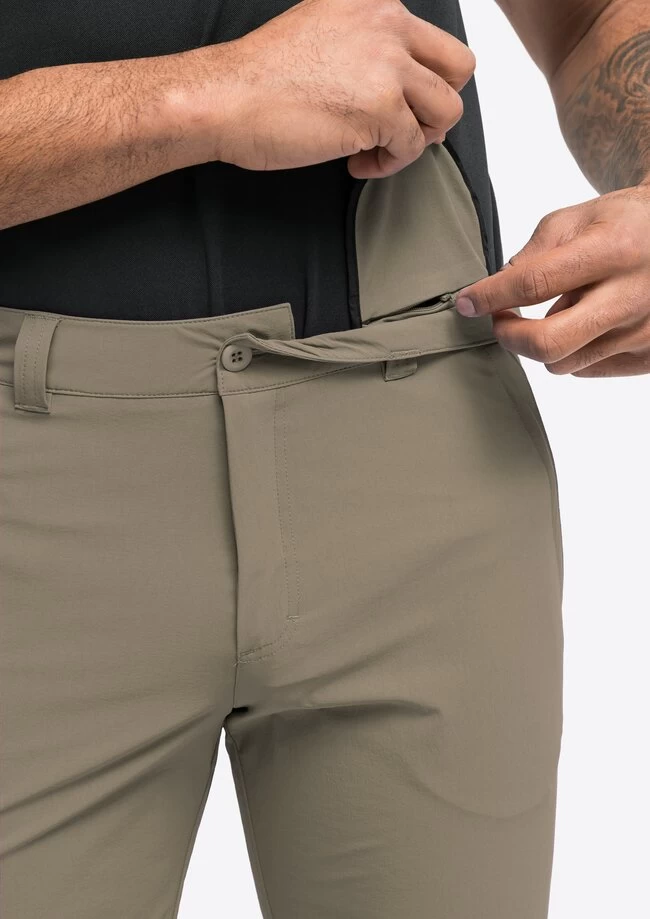 If you’re caught out by a summer shower, these breathable HUANG shorts dry extremely quickly thanks to dryprotec. The environmentally friendly, PFC-free finish provides water-repellent properties. Four spacious pockets round off these hiking Bermuda shorts, so you can be sure that all your small important items are always close at hand during your hike, even when wearing shorts – and your valuables can be stored in the additional security pocket that is hidden inside.