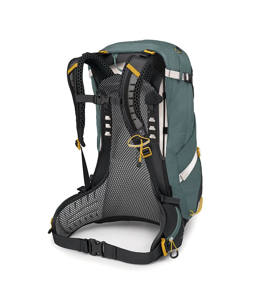Inspired by Osprey’s AntiGravityâ„¢ technology, Stratos 34 provides a fully adjustable AirSpeedâ„¢ ventilated back system which combines the single piece construction of the backpanel and hipbelt with highly breathable suspended mesh. This allows for increased comfort in warm weather, even with a heavy load.