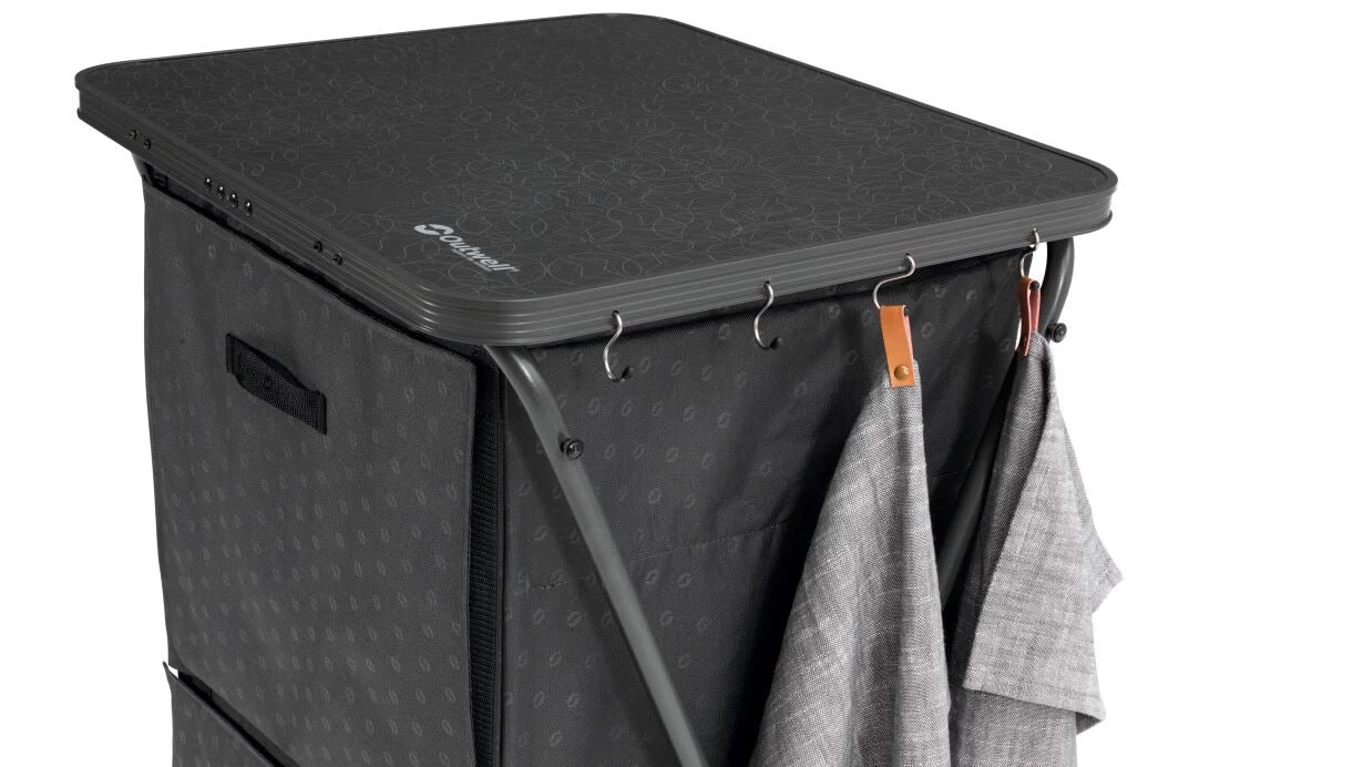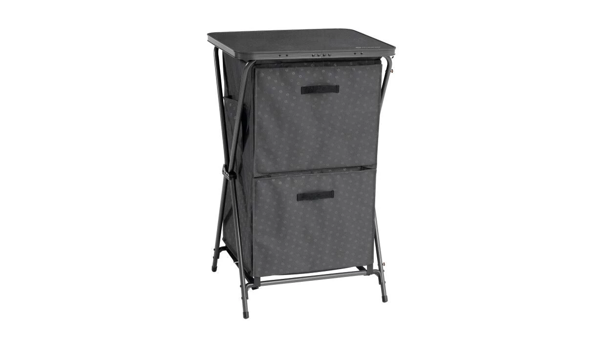 - Solid drop down door with handle provides noise free and home-like easy access to storage space
