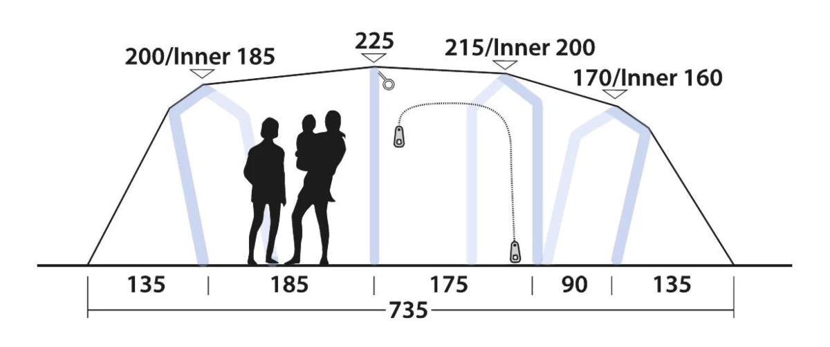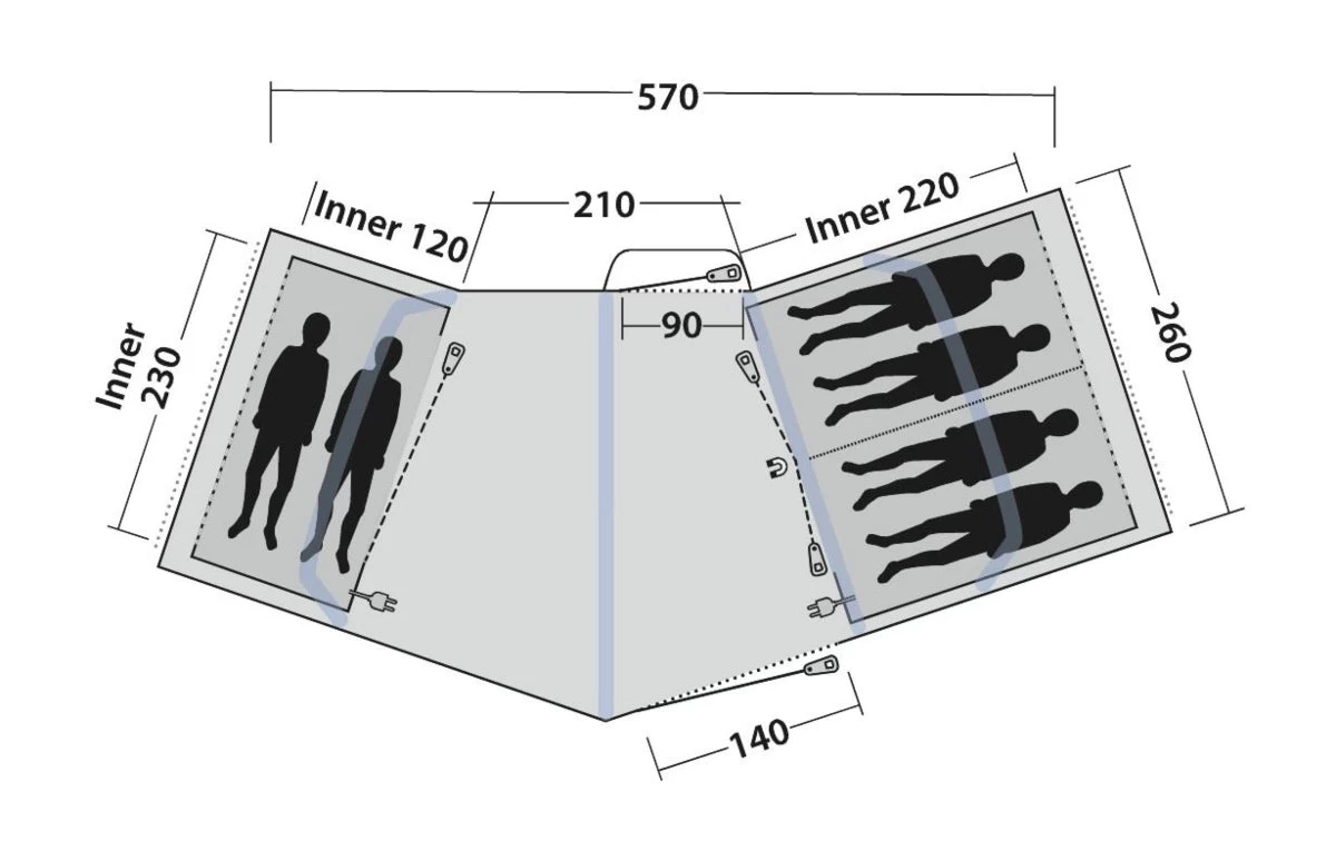 The vis-Ã -vis style Hartford 6 Air tent provides privacy, making it ideal for friends camping together or parents with older kids. It features darkened bedroom inners at both ends with noiseless, hands-free access through patented magnetic Quick & Quiet inner doors. The central living area offers ample headroom and flexibility, perfect for enjoying camping life together. Tuck away the two-person bedroom inner to enjoy even more living space. Easy access is ensured through opposing doors on both sides, each with mesh for ventilation.