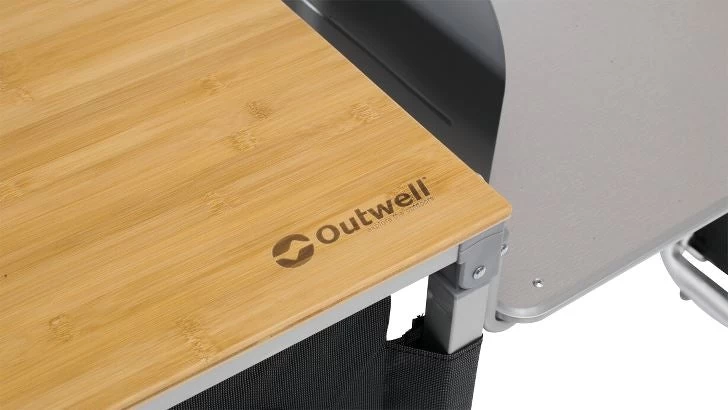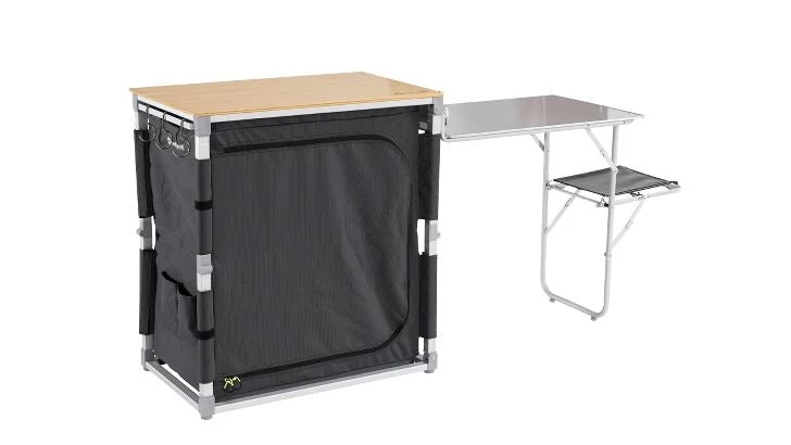 The ultimate mobile kitchen! Prepare food, cook, wash up and clear away with ease, anywhere with the Padres Kitchen Table & Side Unit. It opens up in seconds to give you a large bamboo work surface, side table, windscreen, pull-out washing-up bowl holder and lidded rubbish bin. The handy side pockets are ideal for utensils and condiments. When not in use, it simply folds down into the carry bag