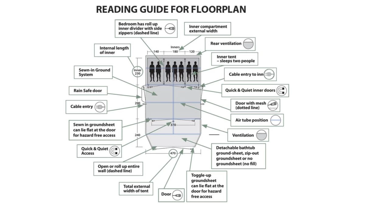- Type of tent: Five room tunnel tent