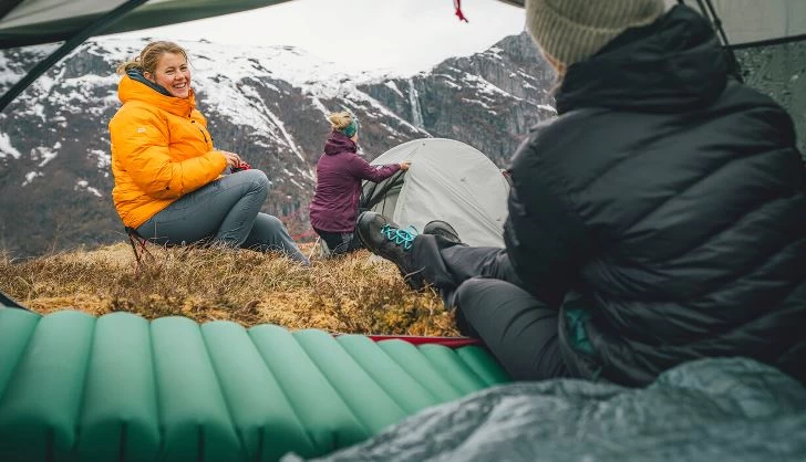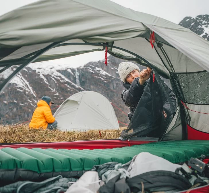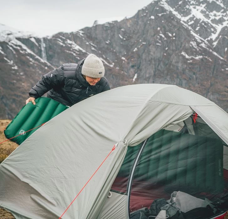 The HybridCore Mat is designed for outstanding insulation and comfort, featuring an innovative three-layer construction that adapts to various outdoor conditions. Made from recycled polyester, it combines two layers of recycled MicroThermo Highloft separated by a foil layer for maximum thermal efficiency. The central foil layer reduces noise, while horizontal air channels let the mat contour to your body for optimal support and comfort.