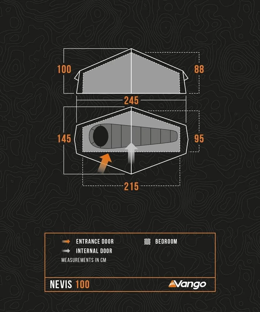 - TBSII – Unique to Vango tents, our Tension Band System creates a triangulated shape inside the tent to brace against strong and changeable winds and reduce sideways deformation. TBSII is easy to adjust and can be securely stowed when not in use.